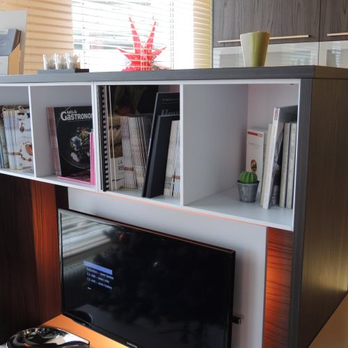 Des années après l’ouverture du magasin, je réalise toujours ces divers aménagements de cuisines, salles de bains, dressings, voire de bibliothèques, et autres équipements d’ intérieurs dans la France entière, et bien entendu à Sarrebourg et ses environs.