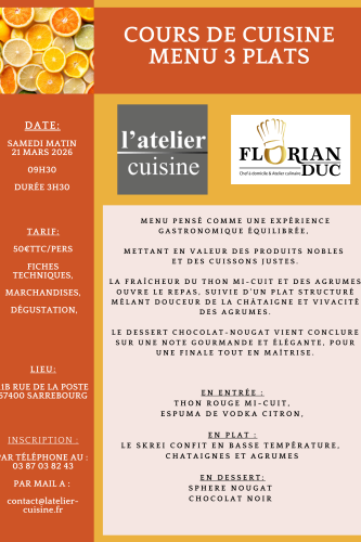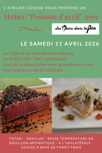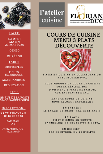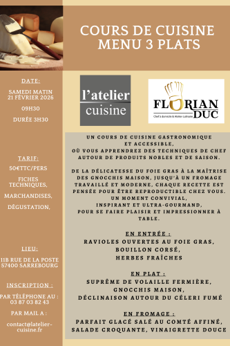 Les réservations sont à effectuer auprès du magasin L’Atelier Cuisine. Les places étant limitées, ne tardez pas à vous inscrire !
