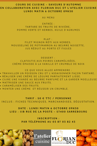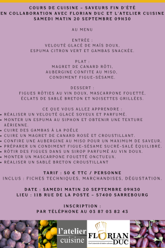 Les réservations sont à effectuer auprès du magasin L’Atelier Cuisine. Les places étant limitées, ne tardez pas à vous inscrire !