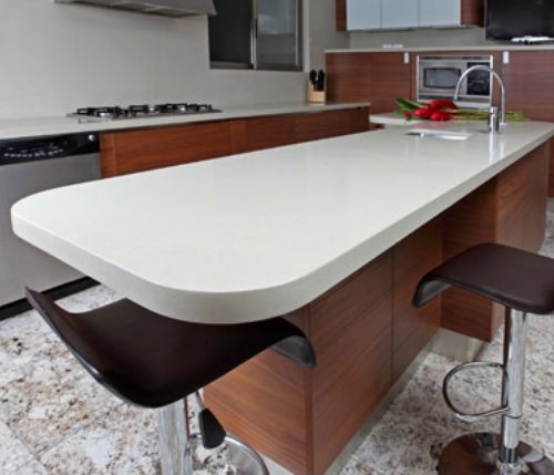 Le Corian est une sorte de résine qui mêle la pierre et l’acrylique. Ce matériau de surface est idéal pour un évier de cuisine ou une vasque de salle de bain, mais également pour un plan de travail.
