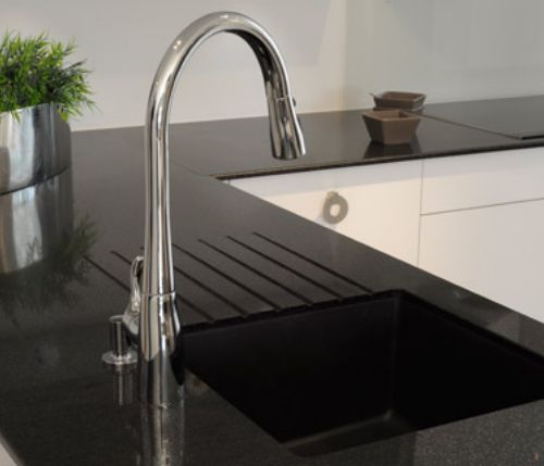 Découpes pour incorporation d'éviers ou plaques de cuisson, ou bien égouttoirs décaissés, éviers en quartz assortis au plan, incrustation de barrettes inox repose-plat… les possibilités de personnalisation sont multiples pour créer un plan de travail de cuisine ergonomique, fonctionnel, adapté aux souhaits et contraintes de chacun.