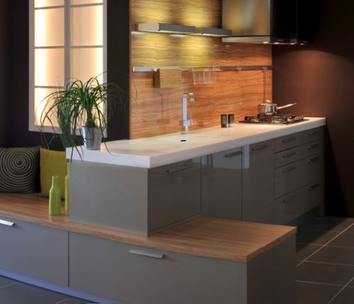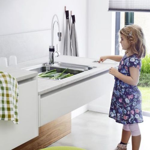 Il est particulièrement bien indiqué dans le cas d’une rénovation puisque l’on peut, par exemple, poser du Corian® sur un ancien plan de travail. C’est un matériau extrêmement solide, résistant aux chocs et aux rayures. Dans le cas d’un impact important, sachez qu’il suffit de poser une « rustine » qui disparaît ensuite au ponçage. Très facile d’entretien, le nettoyage au quotidien se fait simplement avec un chiffon doux et peu de détergent.