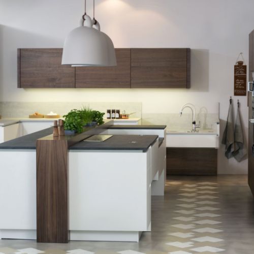 Révisez les possibilités d´organisation de votre cuisine actuelle, peu importe s´il s´agit d´une cuisine réduite ou d´un large espace pour une famille entière, ou même une conception exclusive avec des points culminants, tout est possible, cela avec un maximum d'individualité, un design hors du commun combinés à des détails d'équipement intelligents.