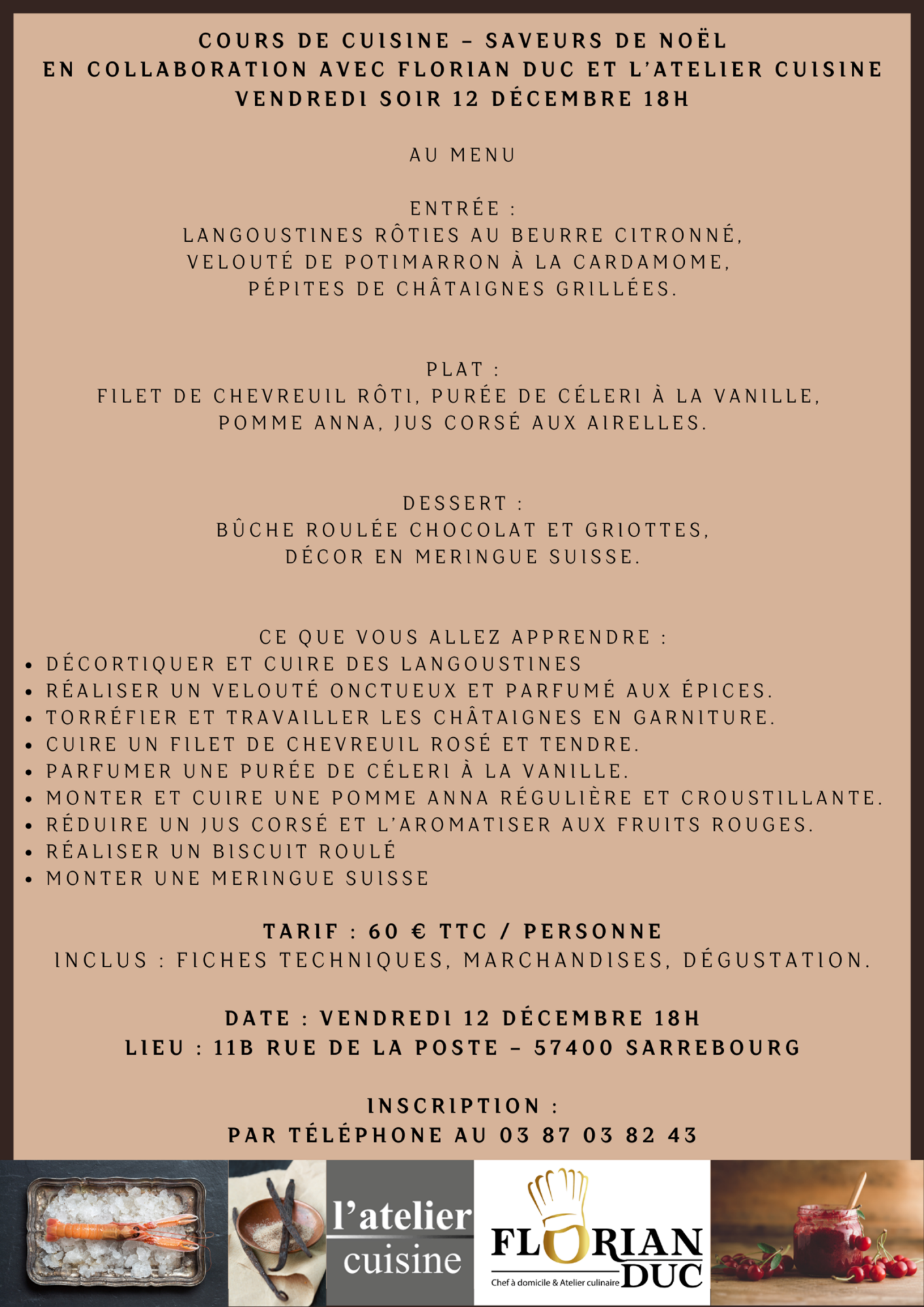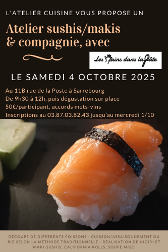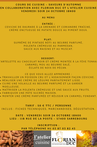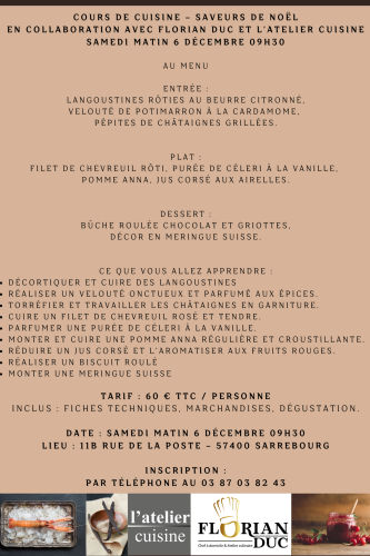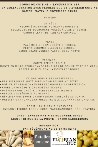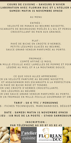 Les réservations sont à effectuer auprès du magasin L’Atelier Cuisine. Les places étant limitées, ne tardez pas à vous inscrire !